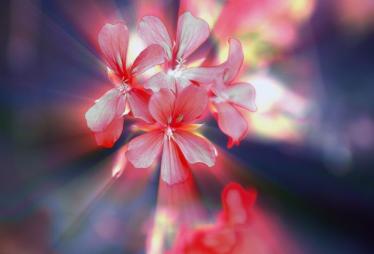 Keywords: flowers a small bunch geranium pelargonium slopes with a sharpness full bloom the petals summer stamens the delicacy gentleness mood plant nature garden figure the backlight balcony flowers closeup flora pelargonium thapsus glow halo