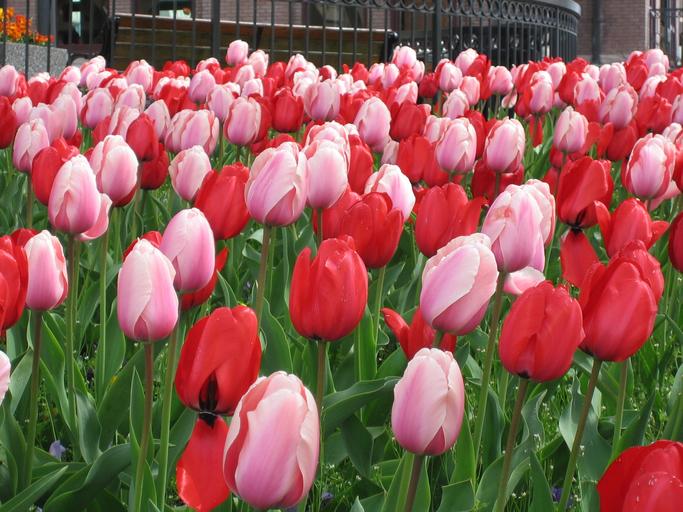 Keywords: flowers tulips white red growing floral blossoms plants colorful petals blooming garden fresh
