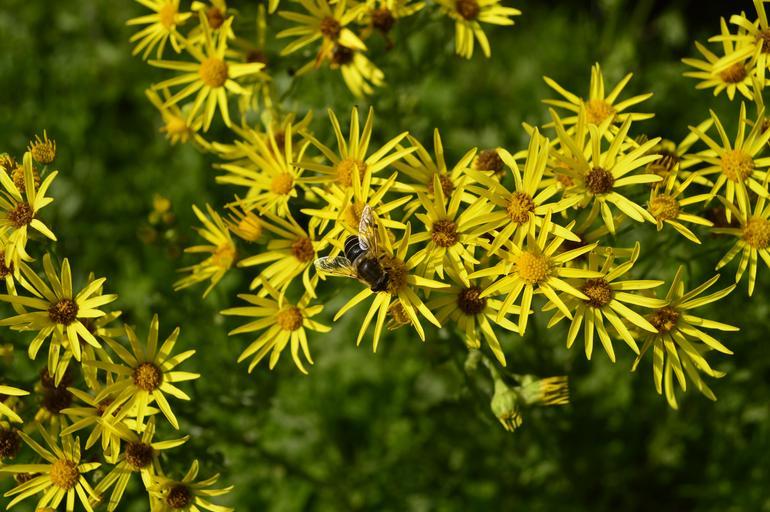 Keywords: flowers yellow bee yellow flower floral blossom color natural bloom flora