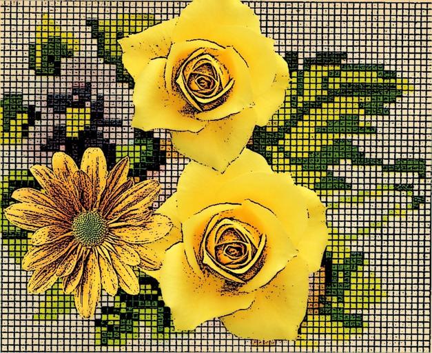Keywords: flowers yellow risk of embroidery assembling kit