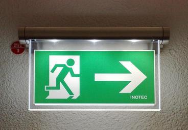 | Keywords: Fluchtwegbeschilderung als Scheibenleuchte, Inotec, LED, rechts.jpg Fluchtwegbeschilderung mit mutmaßlicher LED-Beleuchtung in einem öffentlichem Gebäude in Deutschland Hessen Pfeil nach rechts Exit sign by Inotec with presumed LED lighting in a public building in Germany Hesse Arrow pointing right 2011-09-07 own Saibo The sign itself is PD-ineligible or PD-GermanGov Photo is licensed see below beschnitten Objektivfehler Bild +6 verzerrt Saibo see file history Uploaded_with_UploadWizard Luminous emergency exit signs Emergency exit pictograms luminous Green and white rectangular signs LED lamps |