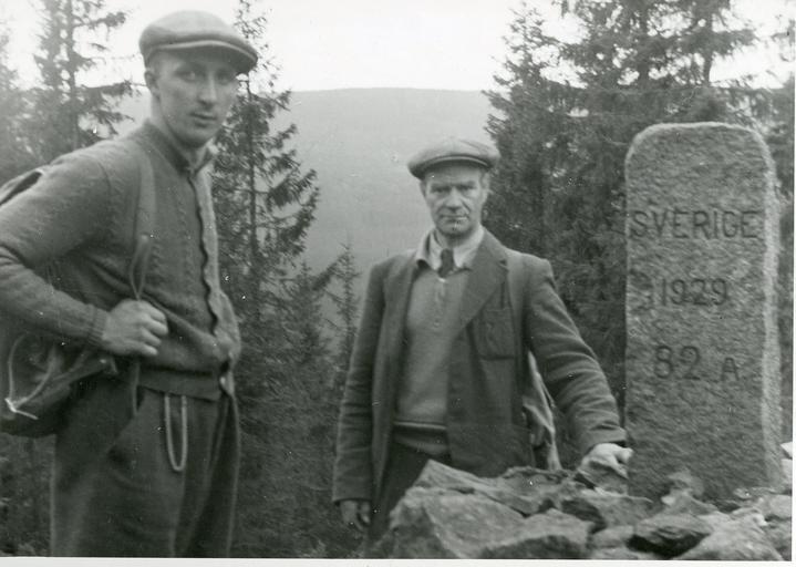 Keywords: people outdoor blackandwhite black and white Norske flyktninger over grensen til Sverige. Ved grenserøys. RA/PA-1209/Uc/68/4/S 5780 Norske flyktninger over grensen til Sverige. Ved grenserøys. RA/PA-1209/Uc/68/4/S 5780