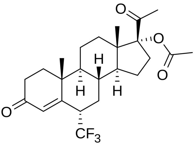Keywords: Flumedroxone acetate.svg Chemical structure of flumedroxone acetate Own 15 00 23 May 2016 UTC Ed Edgar181 Flumedroxone Acetate esters