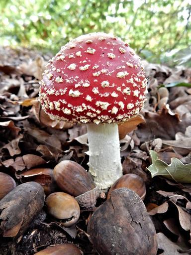 Keywords: fly agaric fungi fly agaric nature mushroom poisonous forest fungus toadstool red cap toxic colorful poison ground natural autumn biology outdoors spotted acorn leaf litter grass environment