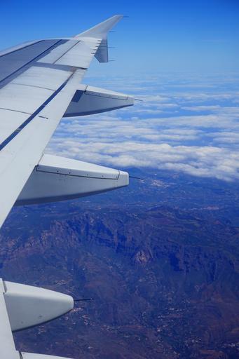 Keywords: fly aircraft wing sky clouds blue island aerial photographs gran canaria canary islands spain