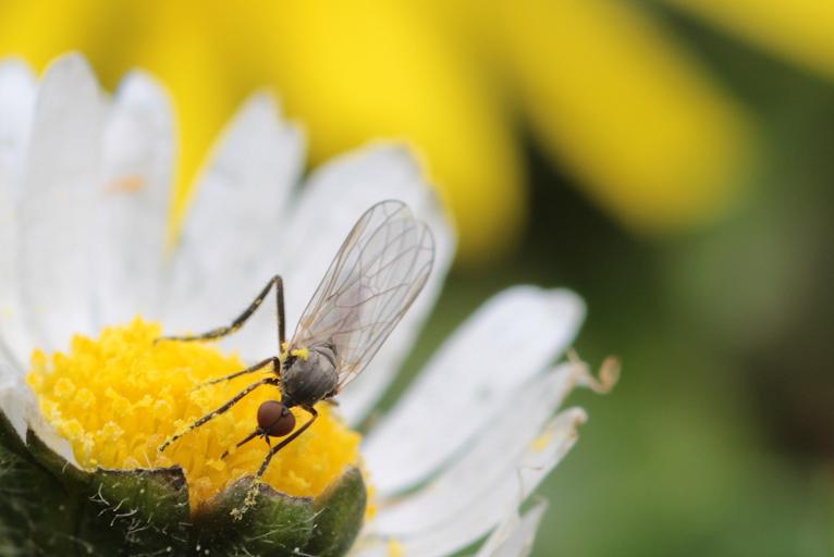 Keywords: fly empis ciliata black dance fly insect wing daisy animal nature nectar search