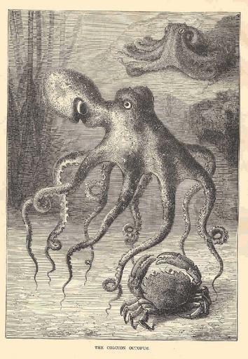 | Keywords: FMIB 33117 Common Octopus.jpeg Common Octopus Subject Octopus Octopus vulgaris Tag Expositions Fish 1883 Cite book Fisheries of the World an Illustrated and Descriptive Record of the International Fisheries Exhibition 1883 Whymper F London Cassell Co Limited 1883 316 Creator Frederick Whymper PD-UWASH-FMIB Institution University of Washington FMIB-source accession number 33117 Images from the Freshwater and Marine Image Bank to check Octopuses in art Crabs in art | ||||