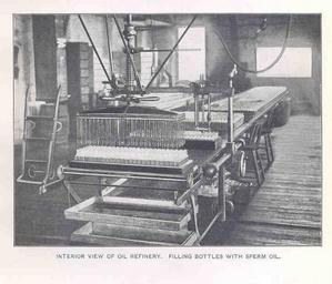 | Keywords: FMIB 34000 Interior View of Oil Refinery.jpeg check categories 15 August 2015 3 Interior View of Oil Refinery Filling Bottles with Sperm Oil Subject Whale oil Whaling Tag Aquatic Mammals 1901-1902 Cite book Aquatic Products in Arts and Industries Stevenson Charles Hugh b Washington DC Government Printing Office 1904 Report of the Commissioner United States Commission of Fish and Fisheries 1901-1902 Plate 14b Creator Charles Hugh Stevenson PD-UWASH-FMIB Institution University of Washington FMIB-source accession number 34000 Images from the Freshwater and Marine Image Bank to check Charles Hugh Stevenson Whale oil Marine mammals |