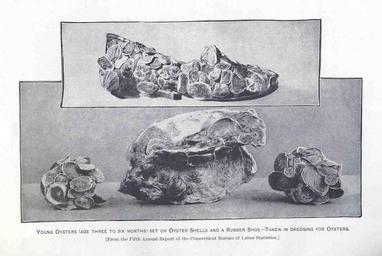 | Keywords: FMIB 34192 Young Oysters (Age Three to Six Months) Set on Oyster Shells and a Rubber Shoe.jpeg check categories 15 August 2015 2 Young Oysters Age Three to Six Months Set on Oyster Shells and a Rubber Shoe Taken in Dredging for Oysters Subject Oysters Oyster fisheries Tag Shellfish 1889 Cite book Notes on the oyster fishery of Connecticut Collins J W Washington DC Government Printing Office 1891 Bulletin of the United States Fish Commission vol 9 1889 Plate CLXIII Creator Joseph William Collins PD-UWASH-FMIB Institution University of Washington FMIB-source accession number 34192 Images from the Freshwater and Marine Image Bank to check Joseph William Collins Oyster culture |