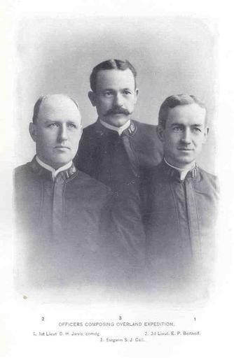 | Keywords: FMIB 35131 Officers composing overland expedition.jpeg Officers composing overland expedition 1st Lieud D H Jarvis 2d Lieut E P Bertholf Surgeon S J Call Subject Ships--United States--Officers Tag People 1899 Cite book Report of the Cruise of the U S Revenue Cutter Bear and the Overland Expedition for the Relief of the Whalers in the Arctic Ocean from November 27 1897 to September 13 1898 Washington DC Government Printing Office 1899 Facing page 28 author PD-UWASH-FMIB Institution University of Washington FMIB-source accession number 35131 Images from the Freshwater and Marine Image Bank to check |