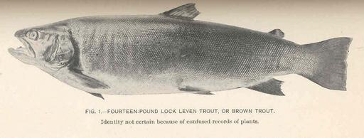 | Keywords: FMIB 37751 Fourteen-Pound Lock Leven Trout, or Brown Trout.jpeg check categories 15 September 2015 2 Fourteen-Pound Lock Leven Trout or Brown Trout Identity not certain because of confused records of plants Subject Brown trout Tag Fish 1914 Cite book Fishes and Fishing in Sunapee Lake Kendall William Converse Washington DC Government Printing Office 1914 Report of the Commissioner of Fisheries for the Fiscal Year 1912 and Special Papers Plate 7-1 Creator William Converse Kendall PD-UWASH-FMIB Institution University of Washington FMIB-source accession number 37751 Images from the Freshwater and Marine Image Bank to check Drawings of fish by William Converse Kendall Salmo trutta |