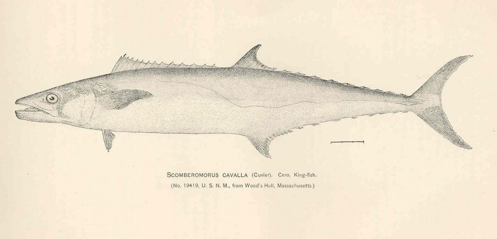 Keywords: FMIB 37834 Scomberomorus Cavalla (Cuvier) Cero, King-Fish.jpeg check categories 18 September 2015 3 Scomberomorus Cavalla Cuvier Cero King-Fish Subject King mackerel Tag Fish 1887 Cite book Review of the Mackerels Scombbinae of America and Europe Bulletin of the United States Fish Commission v 7 1887 Dressler Fletcher B ; Fesler Bert Washington DC Government Printing Office 1889 Plate XI Fletcher B Dressler Bert Fesler PD-UWASH-FMIB Institution University of Washington FMIB-source accession number 37834 Images from the Freshwater and Marine Image Bank to check Fletcher B Dressler Bert Fesler Scomberomorus cavalla |