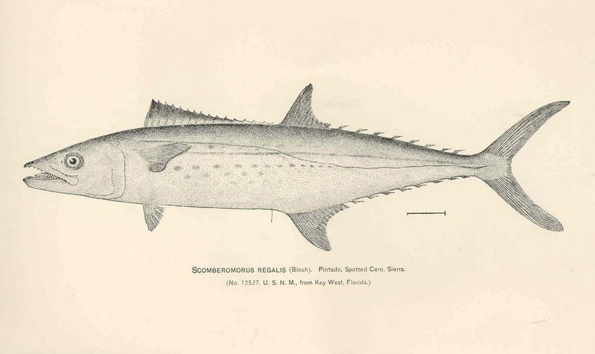 Keywords: FMIB 37836 Scomberomorus Regalis (Bloch) Pintado, Spotted Cero, Sierra.jpeg check categories 18 September 2015 3 Scomberomorus Regalis Bloch Pintado Spotted Cero Sierra Subject Scomberomorus Tag Fish 1887 Cite book Review of the Mackerels Scombbinae of America and Europe Bulletin of the United States Fish Commission v 7 1887 Dressler Fletcher B ; Fesler Bert Washington DC Government Printing Office 1889 Plate X Fletcher B Dressler Bert Fesler PD-UWASH-FMIB Institution University of Washington FMIB-source accession number 37836 Images from the Freshwater and Marine Image Bank to check Fletcher B Dressler Bert Fesler Scomberomorus |