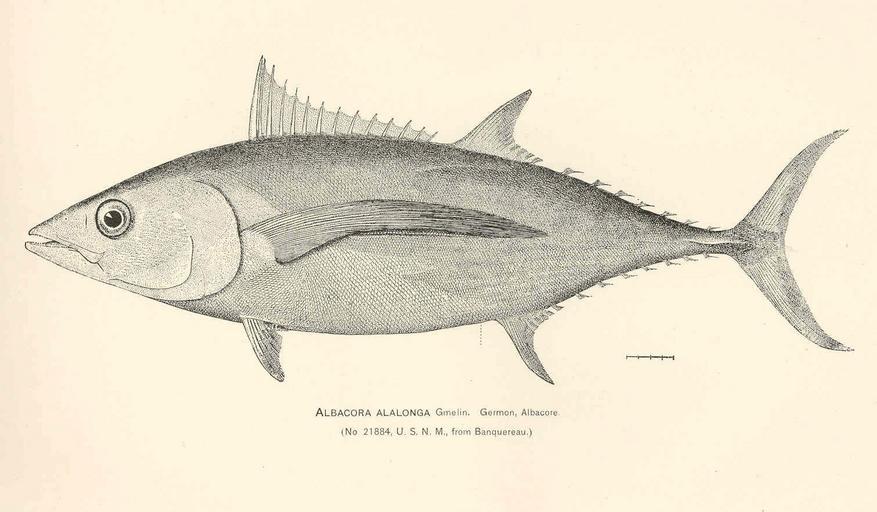 | Keywords: FMIB 37839 Albacoria Alalonga Gmelin Germon, Albacore.jpeg check categories 18 September 2015 3 Albacoria Alalonga Gmelin Germon Albacore Subject Albacore Tag Fish 1887 Cite book Review of the Mackerels Scombbinae of America and Europe Bulletin of the United States Fish Commission v 7 1887 Dressler Fletcher B ; Fesler Bert Washington DC Government Printing Office 1889 Plate VI Fletcher B Dressler Bert Fesler PD-UWASH-FMIB Institution University of Washington FMIB-source accession number 37839 Images from the Freshwater and Marine Image Bank to check Fletcher B Dressler Bert Fesler Thunnus alalunga |