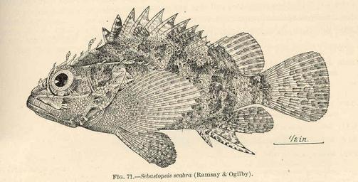 Keywords: FMIB 39663 Sebastopsis scabra (Ramsay & Ogilby).jpeg Sebastopsis scabra Ramsay Ogilby Subject Scorpionfishes Sebastopsis Tag Fish 1906 of the Species Found in the Archipelago with a Provisional Check-List of the Fishes of Oceania Jordan David Starr; Seale Alvin Washington DC Government Printing Office 1906 Bulletin of the Bureau of Fisheries v 25 1905 Fig 71 Creator David Starr Jordan Creator Alvin Seale PD-UWASH-FMIB Institution University of Washington FMIB-source accession number 39663 Images from the Freshwater and Marine Image Bank to check David Starr Jordan Alvin Seale Scorpaenodes scaber |