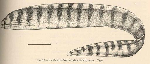Keywords: FMIB 41028 Echidna psalion Jenkins, new species.jpeg Echidna psalion Jenkins new species Subject Morays Gymnothorax Tag Fish 1904 s of New Species Jenkins Oliver P Washington DC Government Printing Office 1904 Bulletin of the United States Fish Commission vol 22 1902 Fig 12 Creator Oliver Peebles Jenkins PD-UWASH-FMIB Institution University of Washington FMIB-source accession number 41028 Images from the Freshwater and Marine Image Bank to check Oliver Peebles Jenkins Echidna polyzona |