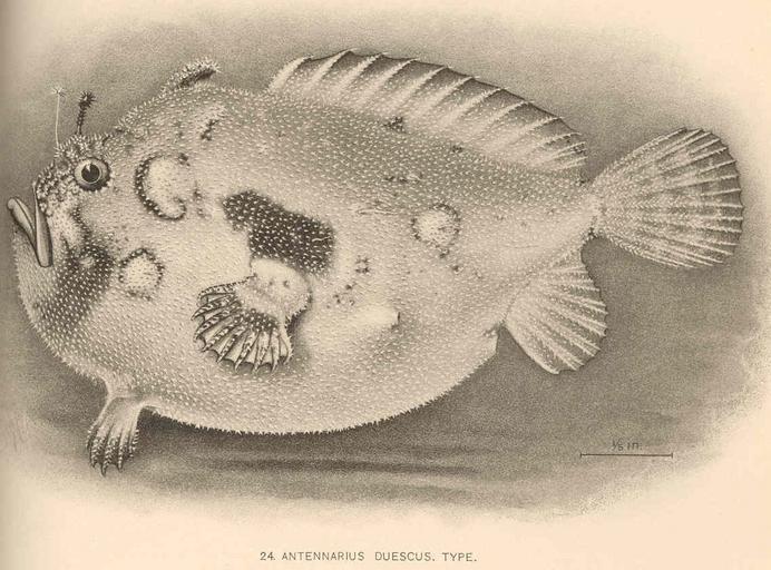 Keywords: FMIB 41092 Antennarius duescus Type.jpeg Antennarius duescus Type Subject Antennarius Tag Fish 1904 Cite book Catalogue of the Shore Fishes Collected by the Steamer Albatross About the Hawaiian Islands in 1902 Snyder John Otterbein Washington DC Government Printing Office 1904 Bulletin of the United States Fish Commission vol 22 1902 Plate 13-24 Creator John Otterbein Snyder PD-UWASH-FMIB Institution University of Washington FMIB-source accession number 41092 Images from the Freshwater and Marine Image Bank to check John Otterbein Snyder Antennarius duescus Antennatus duescus |