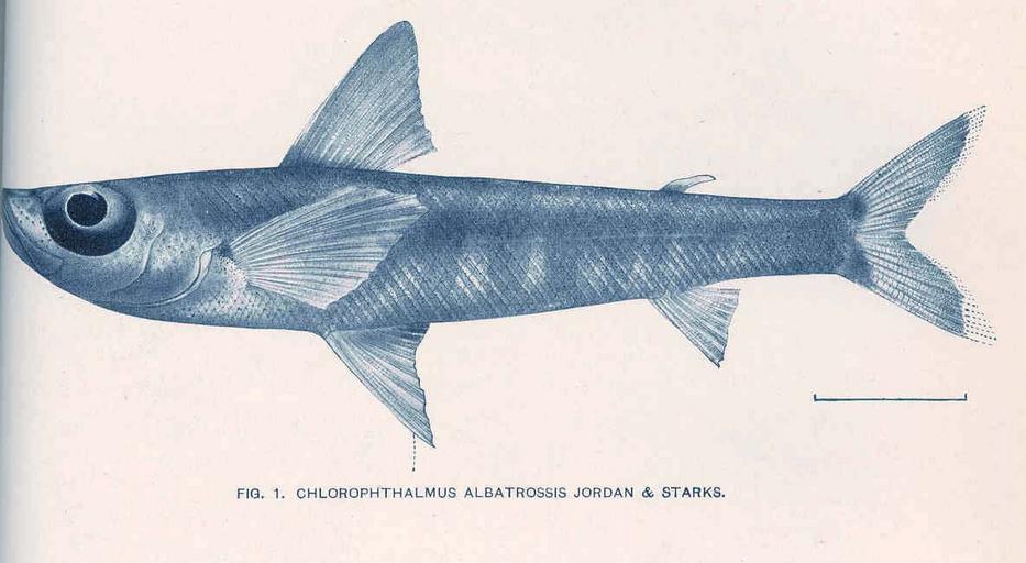 Keywords: FMIB 41157 Chlorophthalmus albatrossis Jordan & Starks.jpeg Chlorophthalmus albatrossis Jordan Starks Subject Scopelidae Chlorophthalmus Tag Fish 1904 s of New Species and a Review of the Japanese Macrouridae Jordan David Starr; Starks Edwin Chapin Washington DC Government Printing Office 1904 Bulletin of the United States Fish Commission vol 22 1902 Plate 1-1 Creator David Starr Jordan Creator Edwin Chapin Starks PD-UWASH-FMIB Institution University of Washington FMIB-source accession number 41157 Images from the Freshwater and Marine Image Bank to check David Starr Jordan Edwin Chapin Starks Chlorophthalmus albatrossis |