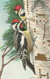 | Keywords: FMIB 41890 Yellow-Bellied Sapsucker Full figure male, upper figure female.jpeg check categories 17 August 2015 2 Yellow-Bellied Sapsucker Full figure male upper figure female Subject Yellow-bellied sapsucker Tag Birds 1903 Cite book Eighth and Ninth Reports of the Forest Fish and Game Commission of the State of New York 1902-1903 New York State Forest Fish and Game Commission Albany NY J B Lyon Company Printers n d Facing page 248 Creator Louis Agassiz Fuertes PD-UWASH-FMIB Institution University of Washington FMIB-source accession number 41890 Images from the Freshwater and Marine Image Bank to check Louis Agassiz Fuertes Sphyrapicus varius |