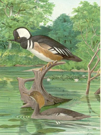 | Keywords: FMIB 41924 Hooded Merganser Upper figure male, lower figure female.jpeg check categories 17 August 2015 1 Hooded Merganser Upper figure male lower figure female Subject Mergansers Tag Water Birds 1903 Cite book Eighth and Ninth Reports of the Forest Fish and Game Commission of the State of New York 1902-1903 New York State Forest Fish and Game Commission Albany NY J B Lyon Company Printers n d Facing page 354 Creator Louis Agassiz Fuertes PD-UWASH-FMIB Institution University of Washington FMIB-source accession number 41924 Images from the Freshwater and Marine Image Bank to check Louis Agassiz Fuertes |