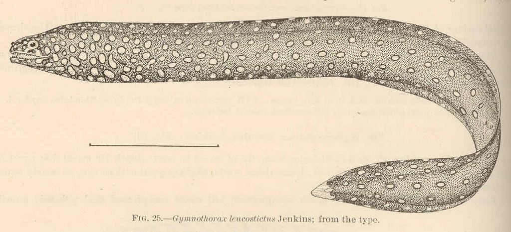 Keywords: FMIB 42386 Gymnothorax leucostictus Jenkins; from the type.jpeg Gymnothorax leucostictus Jenkins; from the type Subject Morays Gymnothorax Tag Fish 1905 Cite book Shore Fishes of the Hawaiian Islands With a General Account of the Fish Fauna Jordan David Starr; Evermann Barton Warren Washington DC Government Printing Office 1905 Bulletin of the United States Fish Commission vol 23 for 1903 part I Fig 25 Creator David Starr Jordan Creator Barton Warren Evermann PD-UWASH-FMIB Institution University of Washington FMIB-source accession number 42386 Images from the Freshwater and Marine Image Bank to check David Starr Jordan Barton Warren Evermann Gymnothorax meleagris |
