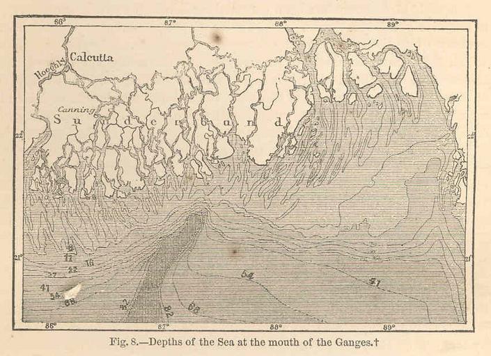 | Keywords: FMIB 43857 Depth of the Sea at the Mouth of the Ganges.jpeg  check categories 7 September 2015 2 Depth of the Sea at the Mouth of the Ganges Subject Bengal Bay of--Bathymetric maps Indian Ocean--Bathymetric maps Ganges River India and Pakistan --Bathymetric maps Geographic Subject Indian Ocean Bengal Bay of India--Ganges River Pakistan--Ganges River Tag Coasts 1873 Cite book Ocean Atmosphere and Life being the Second Series of a Descriptive History of the Life of the Globe Reclus Elisee New York City NY Harper Brothers Publishers 1873 Fig 8 Creator Élisée Reclus PD-UWASH-FMIB Institution University of Washington FMIB-source accession number 43857 Images from the Freshwater and Marine Image Bank to check Élisée Reclus Bathymetric maps of the Indian Ocean |