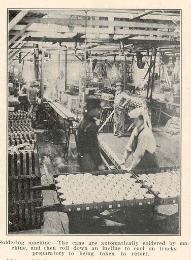 View Original:FMIB_44308_Soldering_machine--The_cans_are_automatically_soldered_by_machine,_and_then_roll_down_an_incline_to_cool_on_trucks_preparatory.jpeg (661x899)