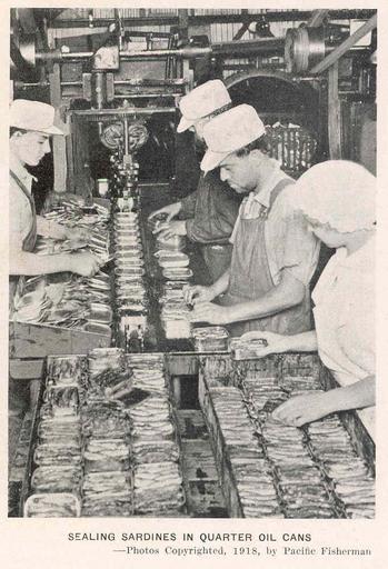 | Keywords: FMIB 45012 Sealing Sardines in Quarter Oil Cans.jpeg check categories 22 August 2015 2 Sealing Sardines in Quarter Oil Cans Subject Sardine fisheries Fishery processing industries Canneries Tag Commercial Fisheries 1918 Cite book Sealing Sardines in Quarter Oil Cans Seattle WA 1918 Pacific Fisherman Year Book 1918 45 author PD-UWASH-FMIB Institution University of Washington FMIB-source accession number 45012 Images from the Freshwater and Marine Image Bank to check Canneries Fisheries | ||||