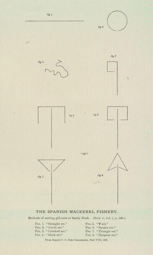 MAKE A MEME View Large Image Spanish Mackerel Fishery.jpeg check categories 18 August 2015 3 Spanish Mackerel Fishery Methods of setting gill-nets at Sandy Hook Fig 1 'Straight set'; Fig 2 'Circle set'; Fig 3 'Crooked set'; Fig 4 'hook set; Fig 5 'T set'; Fig 6 'Square ...