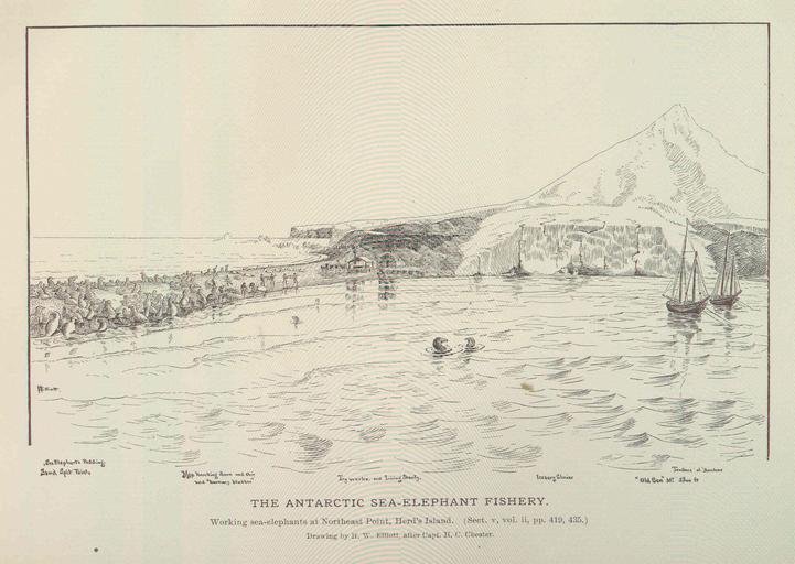 | Keywords: FMIB 46007 Antarctic Sea-Elephant Fishery.jpeg check categories 19 September 2015 5 Antarctic Sea-Elephant Fishery Working sea-elephants at Northeast Point Herd's Island Subject Heard Island Antarctica Elephant seals Geographic Subject Antarctica--Heard Island Tag Aquatic Mammals 1887 Cite book Fisheries and Fishery Industries of the United States Goode George Brown Washington DC Government Printing Office 1887 Plate 228 Creator Henry Wood Elliott H C Chester PD-UWASH-FMIB Institution University of Washington FMIB-source accession number 46007 Images from the Freshwater and Marine Image Bank to check Henry W Elliott H C Chester Heard Island Mirounga Marine mammals |