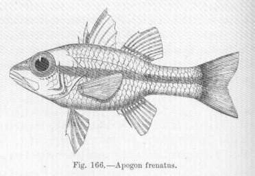 Keywords: FMIB 47076 Apogon frenatus.jpeg Apogon frenatus Subject Apogon Tag Fish 1880 Cite book Introduction to the Study of Fishes Gunther Albert C L G Edinburgh Scotland Adam and Charles Black 1880 Fig 166 Creator Albert Günther PD-UWASH-FMIB Institution University of Washington FMIB-source accession number 47076 Images from the Freshwater and Marine Image Bank to check Albert Günther zoologist Pristiapogon fraenatus Introduction to the Study of Fishes |