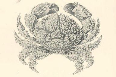 Keywords: FMIB 47664 Naturally-Protected Coral Crab.jpeg Naturally-Protected Coral Crab Actaea flosculata A small Cyclometope crab found in coral shingle off Ceylon as well as off the Maldives The whole of its upper surface is closely covered with knobs and petal-like spines which make it in its native habitation and in its natural attitude it is here represented conventionally a very inconspicuous object Subject Crabs Actaea Tag Shellfish 1902 00 Cite book Naturalist in Indian Seas or Four Years with the Royal Indian Marine Survey Ship 'Investigator' Alcock Alfred W New York City NY E P Dutton Co 1902 Fig 8 Creator Alfred William Alcock PD-UWASH-FMIB Institution University of Washington FMIB-source accession number 47664 Images from the Freshwater and Marine Image Bank to check Alfred William Alcock Actaea flosculata
