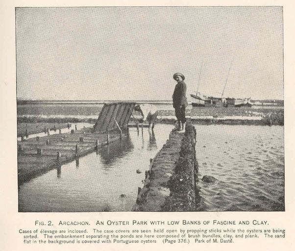 | Keywords: FMIB 47813 Arcachon An oyster park with low banks of fascine and clay.jpeg check categories 19 August 2015 3 Arcachon An oyster park with low banks of fascine and clay Cases of elevage are inclosed The case covers are seen held open by propping sticks while the oysters are being sorted The embankment separating the ponds are here composed of brush bundles clay and plank The sand flat in the background is covered with Portuguese oysters Subject Oyster culture Arcachon France Geographic Subject France--Arcachon Tag Shellfish 1890 00 Cite book Present Methods of Oyster-Culture in France Dean Bashford Washington DC Government Printing Office 1892 Bulletin of the United States Fish Commission vol 10 for 1890 Plate LXXIII-2 Creator Bashford Dean PD-UWASH-FMIB Institution University of Washington FMIB-source accession number 47813 Images from the Freshwater and Marine Image Bank to check Bashford Dean Oyster culture Arcachon |