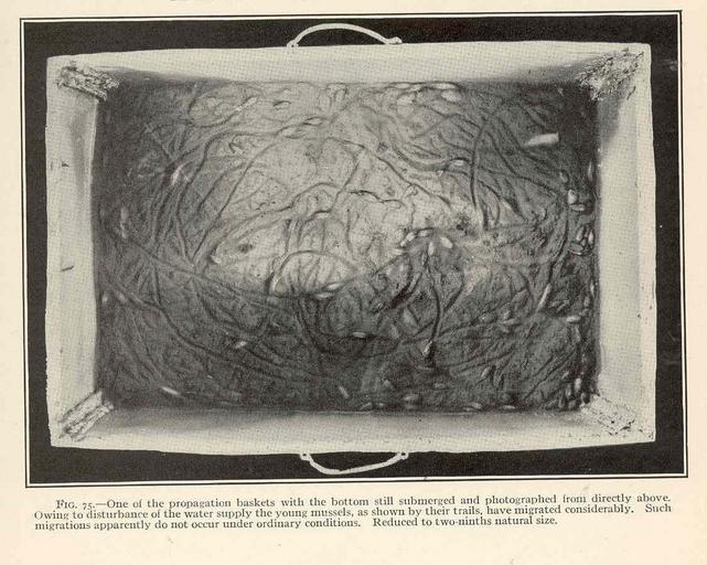 | Keywords: FMIB 47837 One of the propagation baskets with the bottom still submerged and photographed from directly above Owing to disturbance of the.jpeg check categories 22 August 2015 2 One of the propagation baskets with the bottom still submerged and photographed from directly above Owing to disturbance of the water supply the young mussels as shown by their trails have migrated considerably Such migrations apparently do not occur under ordinary conditions Subject Mussel culture--Equipment and supplies Tag Shellfish Aquaculture 1923 00 Cite book Experiments in the Culture of Fresh-Water Mussels Howard Arthur Day Washington DC Government Printing Office 1923 Bulletinof the United States Bureau of Fisheries vol 38 1921-1922 Fig 75 Creator Arthur Day Howard PD-UWASH-FMIB Institution University of Washington FMIB-source accession number 39058 47837 Images from the Freshwater and Marine Image Bank to check Arthur Day Howard Shellfish |