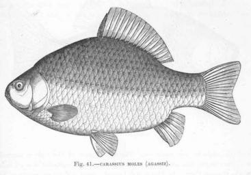 Keywords: FMIB 48009 Carassius moles (Agassiz).jpeg check categories 16 September 2015 3 Carassius moles Agassiz Subject Carassius Carp Tag Fish 1886 Cite book Fresh-Water Fishes of Europe a History of their Genera Species Structure Habits and Distribution Seeley H G London England Cassell Company Limited 1886 Fig 41 Creator Harry Govier Seeley PD-UWASH-FMIB Institution University of Washington FMIB-source accession number 48009 Images from the Freshwater and Marine Image Bank to check Harry Seeley Carassius Cyprinus carpio |