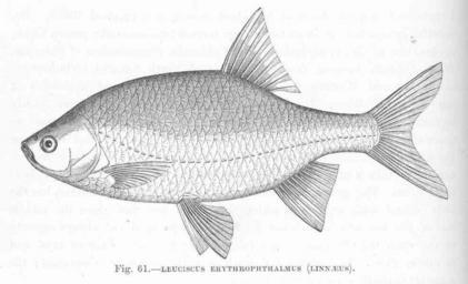 Keywords: FMIB 48029 Leuciscus erythrophthalmus (Linnaeus).jpeg Leuciscus erythrophthalmus Linnaeus Subject Cyprinidae Leuciscus Tag Fish 1886 Cite book Fresh-Water Fishes of Europe a History of their Genera Species Structure Habits and Distribution Seeley H G London England Cassell Company Limited 1886 Fig 61 Creator Harry Govier Seeley PD-UWASH-FMIB Institution University of Washington FMIB-source accession number 48029 Images from the Freshwater and Marine Image Bank to check Harry Seeley Scardinius erythrophthalmus |