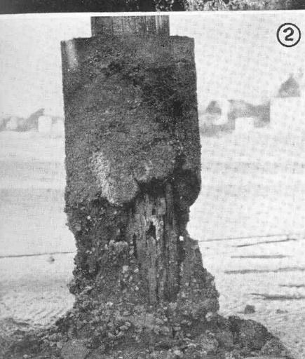 | Keywords: FMIB 49819 Disintegration in concrete jacket placed on pile previously covered by battens and paint Pile attacked by Limnoria where.jpeg check categories 17 September 2015 3 Disintegration in concrete jacket placed on pile previously covered by battens and paint Pile attacked by Limnoria where covering have failed Most of the concrete jackets in this pier were good Subject Piling Civil engineering Weathering Tag Coasts 1921 Cite book Report on the San Francisco Bay Marine Piling Survey San Francisco Bay Marine Piling Committee San Francisco CA San Francisco Bay Marine Piling Committee 1921 1st Plate 7 Fig 2 San Francisco Bay Marine Piling Committee PD-UWASH-FMIB Institution University of Washington FMIB-source accession number 49819 Images from the Freshwater and Marine Image Bank to check San Francisco Bay Marine Piling Committee Piles structural Weathering |