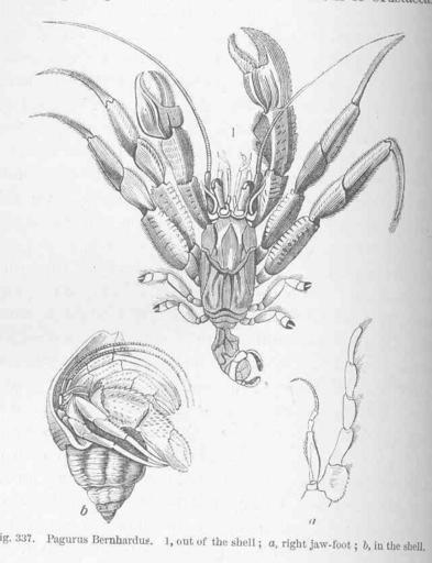 Keywords: FMIB 50412 Pagurus Bernhardus.jpeg check categories 7 September 2015 3 Pagurus Bernhardus 1 out of the shell; a right jaw-foot; b in the shell Subject Pagurus Hermit crabs Tag Shellfish 1868 Cite book Ocean World Being a Descriptive History of the Sea and its Living Inhabitants Fibuier Louis New York D Appleton Co 1868 Fig 337 Creator Charles Bevalet PD-UWASH-FMIB Institution University of Washington FMIB-source accession number 50412 Images from the Freshwater and Marine Image Bank to check Charles Bevalet Pagurus Shellfish