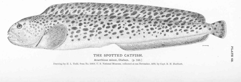 | Keywords: FMIB 50917 Spotted Catfish.jpeg check categories 7 September 2015 3 Spotted Catfish Anarrhicas minor Olafsen Subject Wolffishes Anarhichadidae Tag Fish 1884 Cite book Fisheries and Fishery Industries of the United States Section I Natural History of Useful Aquatic Animals Plates Goode George Brown Washington DC Government Printing Office 1884 Plate 68 Creator H L Todd PD-UWASH-FMIB Institution University of Washington FMIB-source accession number 50917 Images from the Freshwater and Marine Image Bank to check H L Todd Anarhichas lupus Arius maculatus |