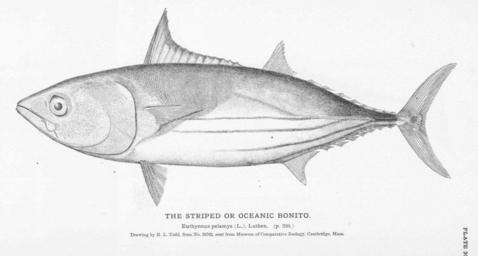 Keywords: FMIB 50951 Striped or Oceanic Bonito.jpeg Striped or Oceanic Bonito Euthynmus pelamys L Lutken Subject Skipjack tuna Tag Fish 1884 Cite book Fisheries and Fishery Industries of the United States Section I Natural History of Useful Aquatic Animals Plates Goode George Brown Washington DC Government Printing Office 1884 Plate 95B Creator H L Todd PD-UWASH-FMIB Institution University of Washington FMIB-source accession number 50951 Images from the Freshwater and Marine Image Bank to check H L Todd Katsuwonus pelamis |