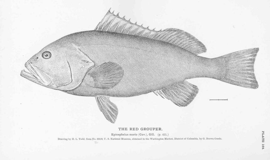 | Keywords: FMIB 51031 Red Grouper.jpeg check categories 7 September 2015 2 Red Grouper Epinephelus morio Cuv Gill Subject Red grouper Tag Fish 1884 Cite book Fisheries and Fishery Industries of the United States Section I Natural History of Useful Aquatic Animals Plates Goode George Brown Washington DC Government Printing Office 1884 Plate 164 Creator H L Todd PD-UWASH-FMIB Institution University of Washington FMIB-source accession number 51031 Images from the Freshwater and Marine Image Bank to check H L Todd Epinephelus morio |