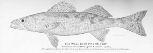 | Keywords: FMIB 51036 Wall-Eyed Pike or Dory.jpeg Wall-Eyed Pike or Dory Stizostedium vitreum Mitch Jordan Copeland Subject Walleye Fish Tag Fish 1884 Cite book Fisheries and Fishery Industries of the United States Section I Natural History of Useful Aquatic Animals Plates Goode George Brown Washington DC Government Printing Office 1884 Plate 169 Creator H L Todd PD-UWASH-FMIB Institution University of Washington FMIB-source accession number 51036 Images from the Freshwater and Marine Image Bank to check H L Todd Sander vitreus |