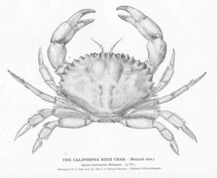 Keywords: FMIB 51199 California Rock Crab.jpeg check categories 8 September 2015 3 California Rock Crab Cancer antennarius Stimpson Subject Crabs Cancer Crustacea Tag Shellfish 1884 Cite book Fisheries and Fishery Industries of the United States Section I Natural History of Useful Aquatic Animals Plates Goode George Brown Washington DC Government Printing Office 1884 Plate 263 Creator H L Todd PD-UWASH-FMIB Institution University of Washington FMIB-source accession number 51199 Images from the Freshwater and Marine Image Bank to check H L Todd Brachyura Shellfish |