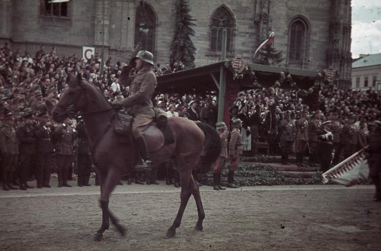 | Keywords: Fő tér a magyar csapatok bevonulása idején, a Szent Mihály-templom előtti emelvénynél Horthy Miklós. A felvétel 1940. szeptember 11-én készült. Fortepan 92494.jpg  hu Fő tér a magyar csapatok bevonulása idején a Szent Mihály-templom előtti emelvénynél Horthy Miklós A felvétel 1940 szeptember 11-én készült Location Romania Transylvania Cluj-Napoca Tags territorial gain national emblem colorful Title Fő tér a magyar csapatok bevonulása idején a Szent Mihály-templom előtti emelvénynél Horthy Miklós A felvétel 1940 szeptember 11-én készült http //www fortepan hu/_photo/download/fortepan_92494 jpg 1940 Fortepan 92494 http //www fortepan hu/_photo/download/fortepan_92494 jpg http //www fortepan hu/ lang en img 92494 Unknown The release at fortepan hu is CC-BY-SA-3 0 As the photographer is unknown or pseudonymous and the photograph is Age 1940 01 01 years old it is considered public domain both in the country of publication Hungary and the USA where Wikimedia Commons is hosted See Fortepan HU for more information on related uploads PD-anon-70-EU PD-anon-auto-1996 1940 Hungary DEFAULTSORT Fortepan 092494 1940 photographs Colour photographs from Fortepan Images uploaded by Fæ Northern Transylvania Second Vienna Award |