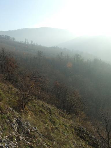 Keywords: fog mysterious beech mountain dédes castle forest nature autumn cliff earthwork