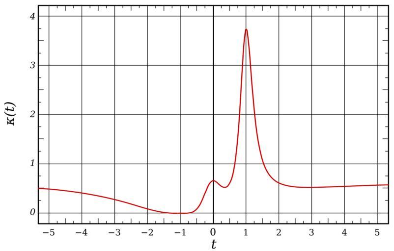 | Keywords: Folium of Descartes Curvature.svg Folium of Descartes t on the interval t -5 5 This is given by <math>\kappa t \frac 2 1 + t 3 4 3 1 + 4 t 2 - 4 t 3 - 4 t 5 + 4 t 6 + t 8 3/2 </math> own Inductiveload 2009-02-27 Mathematica Code <pre><nowiki> kt_ 2 1 + t 3 4 / 3 1 + 4 t 2 - 4 t 3 - 4 t 5 + 4 t 6 + t 8 3/2 ; Plot kt t -5 5 PlotRange -> 0 4 </nowiki></pre> Folium of Descartes | ||||