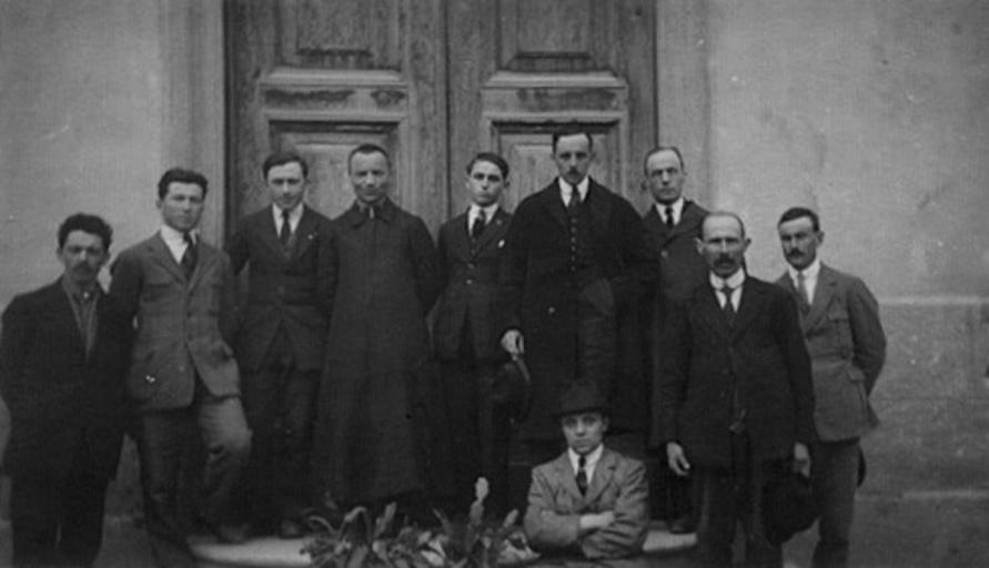 | Keywords: Fondatori della Jeune Vallée d'Aoste.JPG  it Foto di gruppo dei fondatori della Jeune Vallée d'Aoste all'assemblea di fondazione scattata davanti al Piccolo Seminario di Aosta il 22 marzo 1925 Partendo da sinistra in alto Joseph-Athanase Thiébat Ferdinand Bionaz Émile Chanoux Joseph-Marie Trèves Cino Norat Joseph-Marie Alliod Samuel Gerbaz Louis Pellissier François Vallet Joseph Proment è seduto 1925-03-22 Fondo Rodolfo COQUILLARD ISTITUTO STORICO DELLA RESISTENZA E DELLA SOCIETA' CONTEMPORANEA IN VALLE D'AOSTA http //www resvallee it/media/foto/coquillard/sub_foto htm author Custom license marker 2013 11 12 PD-old-70 Uploaded with UploadWizard People of Aosta Valley History of Aosta Valley Joseph-Marie Trèves |