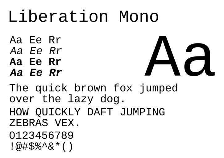 | Keywords: Font Sample - Liberation Mono.svg Font sample for Liberation Mono part of the en Liberation fonts Created in en Inkscape Text converted to curves for portability with systems without the Liberation fonts notably Wikipedia doesn't yet include them Transferred from http //en wikipedia org en wikipedia 2007-08-04 Original uploader was Alan De Smet at http //en wikipedia org en wikipedia Released into the public domain by the author en wikipedia Alan De Smet original upload log page en wikipedia Font_Sample_-_Liberation_Mono svg 2007-08-04 22 06 Alan De Smet 744×525× 191841 bytes <nowiki>Font sample for Liberation Mono part of the Liberation fonts Created in Inkscape Text converted to curves for portability with systems without the Liberation fonts notably Wikipedia doesn't yet include them </nowiki> SVG typeface specimen samples Liberation Mono |
