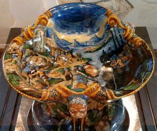 Keywords: Fontana Rinfrescatoi basin.jpg Artwork Creator Orazio Fontana 1565-1571 tin glazing earthenware Maiolica istoriato Institution District Museum in Tarnów Town Hall accession number object history credit line Trilobate cistern rinfrescatoi cooler held scented water offered to guests to wash their hands and cooled wine glasses and bottles Paulina Chrzanowska 1988 Ratusz w Tarnowie Muzeum Okręgowe w Tarnowie p 25 own See below cc-zero DEFAULTSORT 1565-1571; Rinfrescatoi basin Orazio Fontana Ceramics in the District Museum in Tarnów |