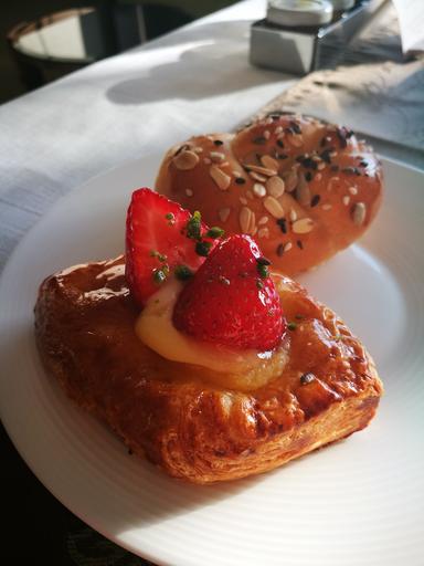 Keywords: food pastry baked dessert snack tasty fattening dough strawberry sweet delicious